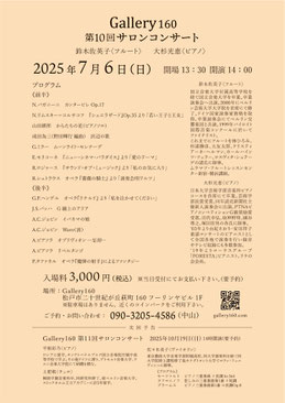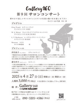 ギャラリー160では、以下の通りサロンコンサートを開催いたします。